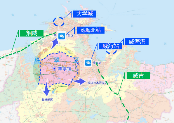 威海国际新材料产业园总规划面积55平方公里,是环翠区委、区政府为实施市域一体化发展战略,打造的“二产发展”为主的新材料产业聚集板块,其中羊亭区域规划面积36平方公里。